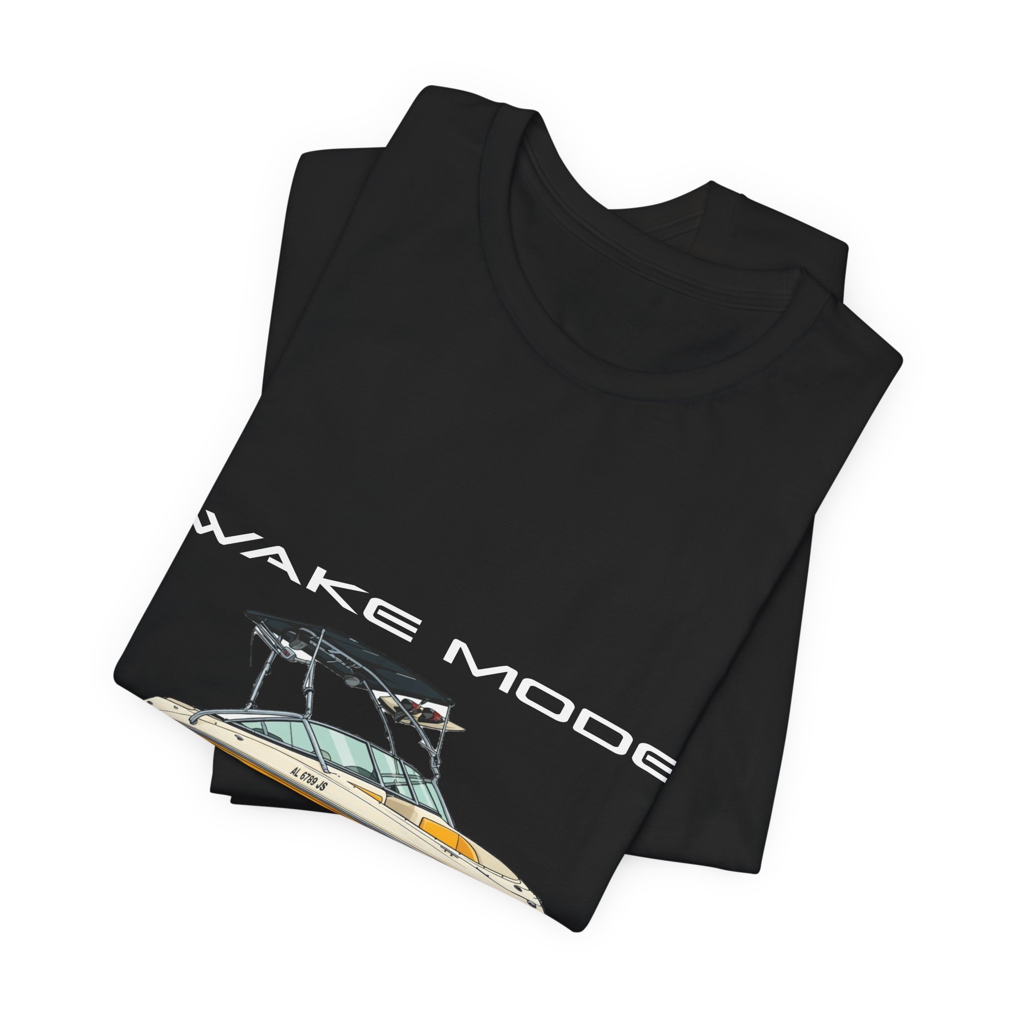 Late afternoon sun glints off the hull as you ease into the cove. This lightweight tee carries that calm confidence — breathable Airlume cotton that layers easily, a clean crew neckline, and a crisp boat graphic with “WAKE MODE” above it. It sits like a well-worn favorite without feeling heavy, so you can slip it on after a long day on the water or wear it into town. The subtle structural details — side seams for shape, shoulder tape to prevent stretching, and a tear-away label — keep it comfortable and durable through seasons of lake runs and dockside hangs.